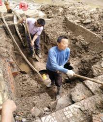 五月一日凌晨三點(diǎn)多鐘,宜城市振興大道聯(lián)通公司門前直徑400mm的鑄鐵管突然爆管。正值五一小長假,為了能在最短的時(shí)間內(nèi)恢復(fù)供水,公司領(lǐng)導(dǎo)接到市民報(bào)警后,及時(shí)組織搶修人員趕赴事發(fā)地點(diǎn),根據(jù)現(xiàn)場情況,迅速制定搶修方案,組織搶修人員緊急開挖,并同時(shí)制作搶修配件。當(dāng)時(shí)宜城正天降大雨,搶修人員的衣服很快就濕透了,雨水與泥土形成的泥漿濺滿了他們?nèi)恚愤^的市民紛紛投來了敬佩的目光。雖然一身雨一身泥,大家全然不顧,心中只有一個(gè)念頭:盡快把管道維修好保證正常供水,讓市民過一個(gè)快樂的五一勞動(dòng)節(jié)。大家齊心協(xié)力,克服一切困難,連續(xù)作戰(zhàn),最終比預(yù)計(jì)的搶修時(shí)間提前了五個(gè)小時(shí)恢復(fù)正常供水。