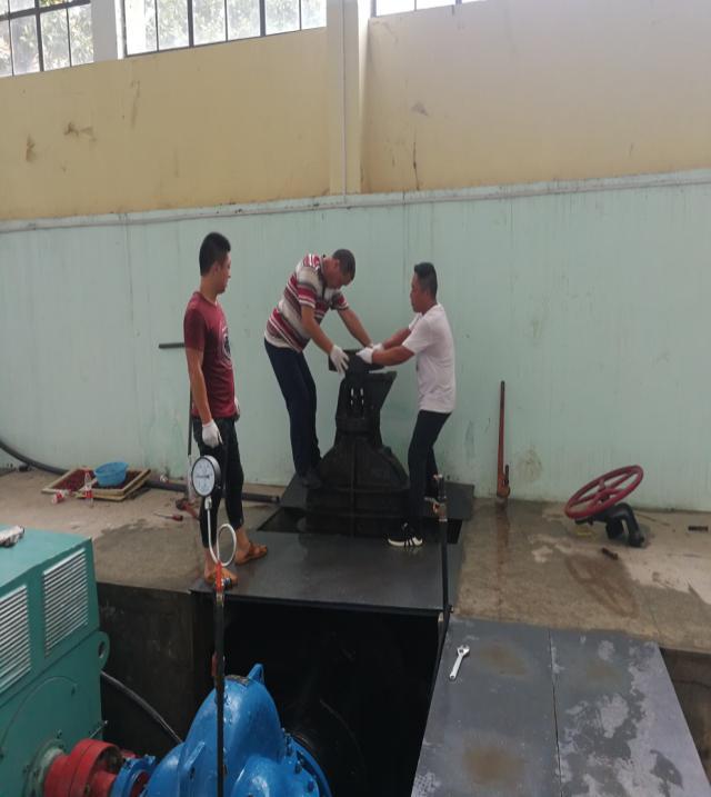 即便時(shí)至夜晚,泵房的溫度也讓人感到悶熱難耐,大汗淋漓,但維修師傅們?nèi)徊活欉@些,聚精會(huì)神地專注于手上的工作,齊心協(xié)力,連續(xù)奮戰(zhàn),終于在第二天凌晨三點(diǎn)左右維修完畢。待一切設(shè)備正常運(yùn)行后,已是凌晨5點(diǎn)了,天已蒙蒙亮,但大家并不感到疲憊,而是有一種搶修勝利后的喜悅從心底油然而生,因?yàn)榇蠹业呐Ω冻觯_保了襄城居民的正常用水,辛苦也值了!